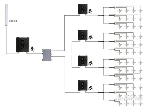 5、室內(nèi):接上轉(zhuǎn)接頭連接上主機(jī)室內(nèi)端口INDOOR,然后連接至室內(nèi)發(fā)射天線,比如一條天線的覆蓋范圍是80平方米,你有100多平方米,需要接上分配器或功分器。