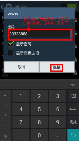 圖 15:輸入原Wifi密碼,不可輸錯,否則擴展失??;還有更改擴展名(給Wifi起個新名字)