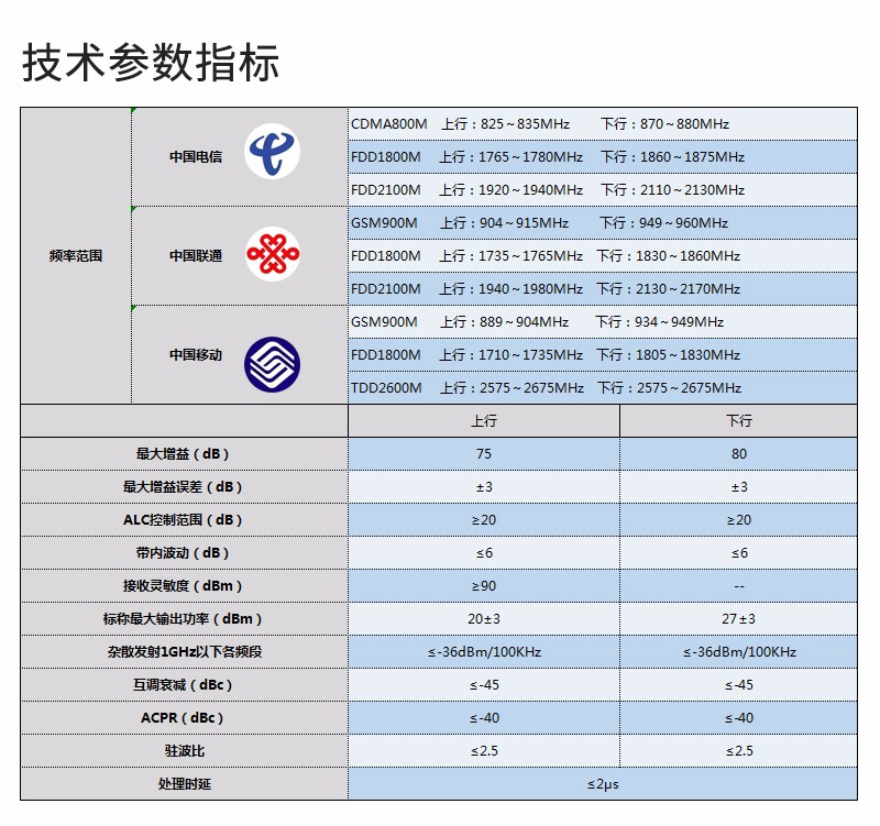CDMA 800: 825-835MHz/870-880MHz(上行/下行)