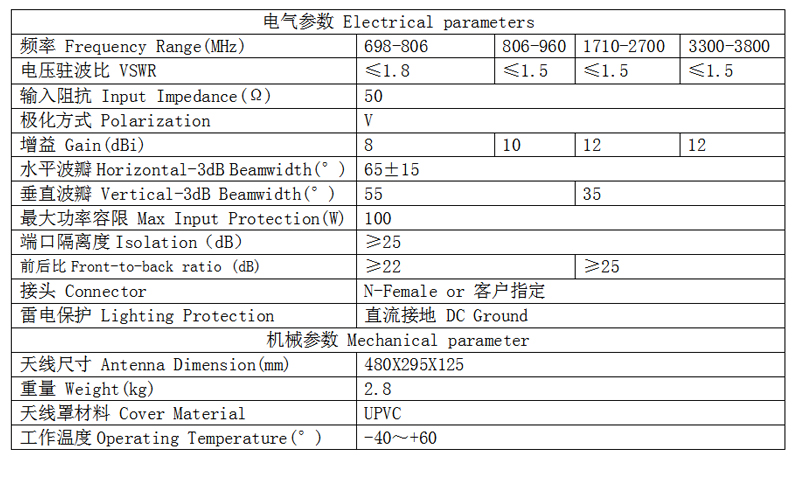單極化定向板狀天線 4G5G天線 700-3800MHz